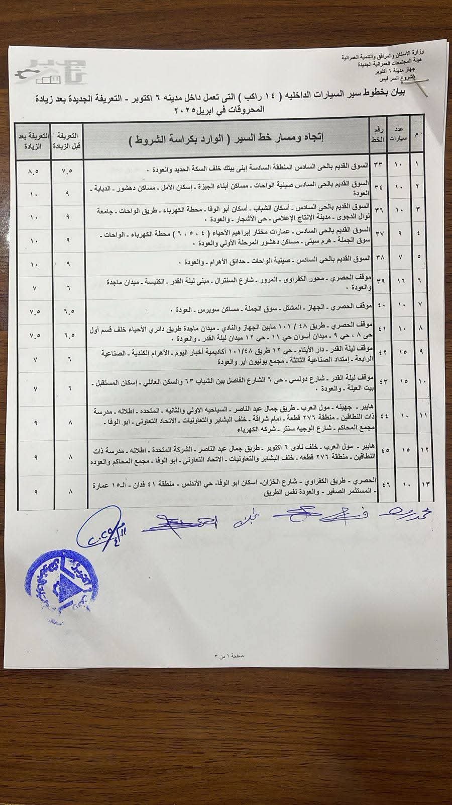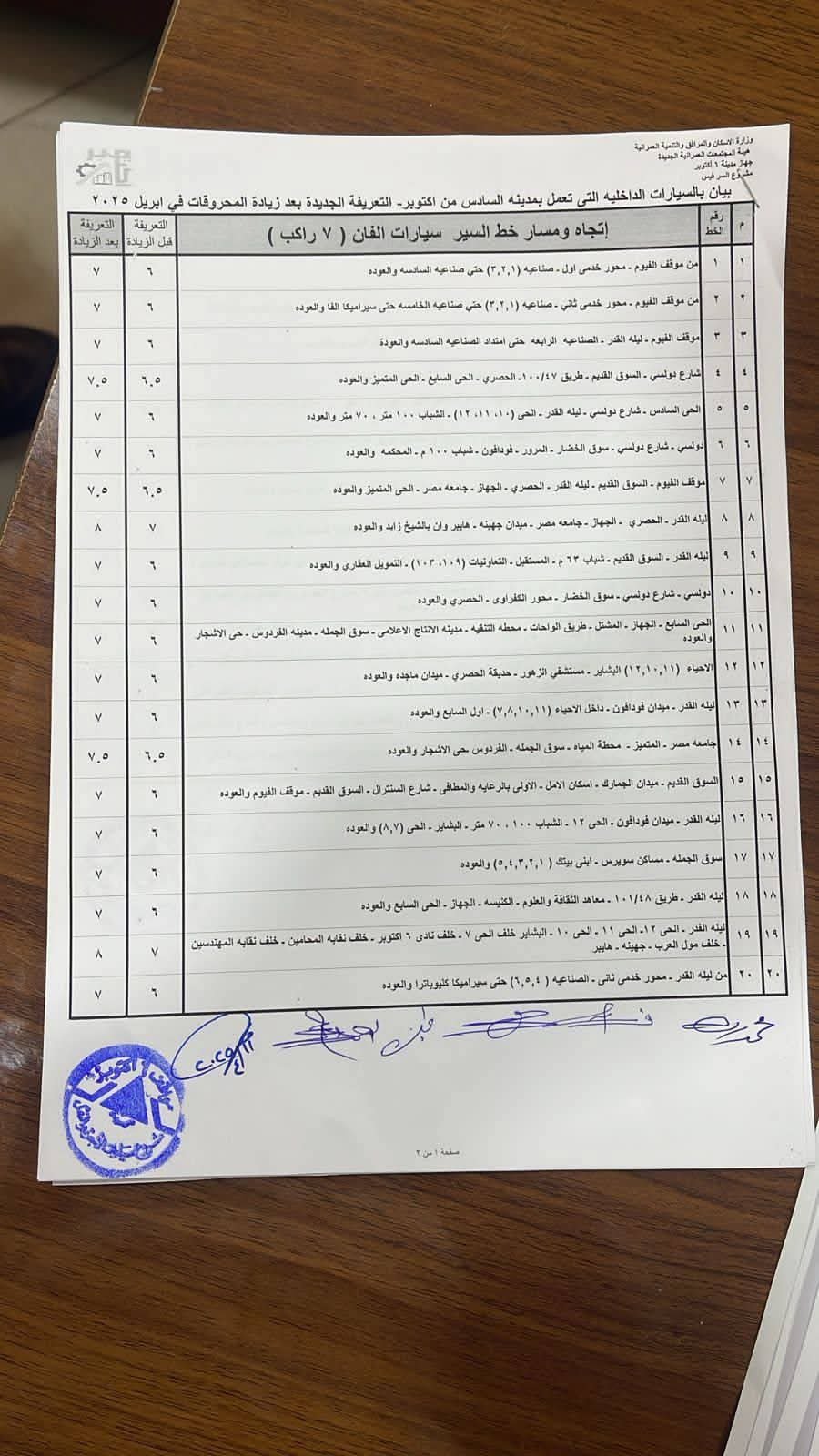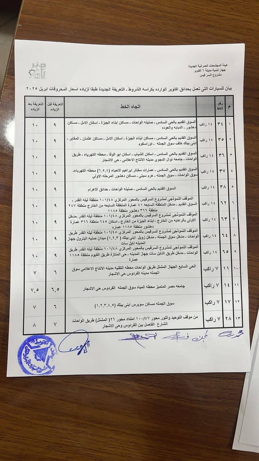 بكشوف الأسعار.. جهاز مدينة 6 أكتوبر يعلن تعديل تعريفة الركوب