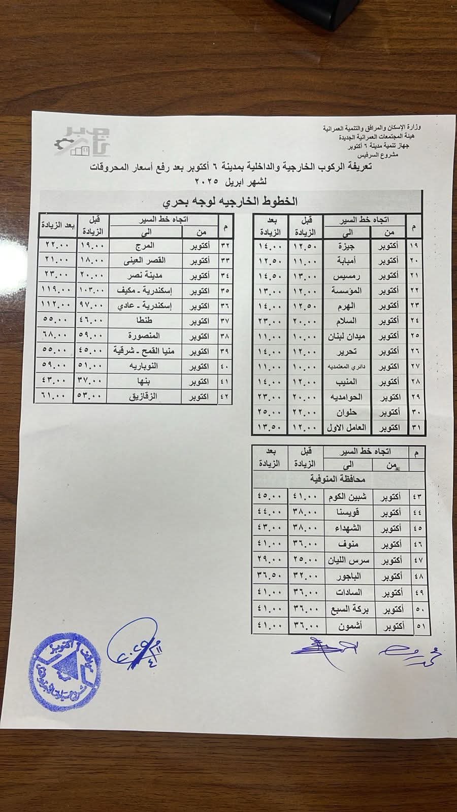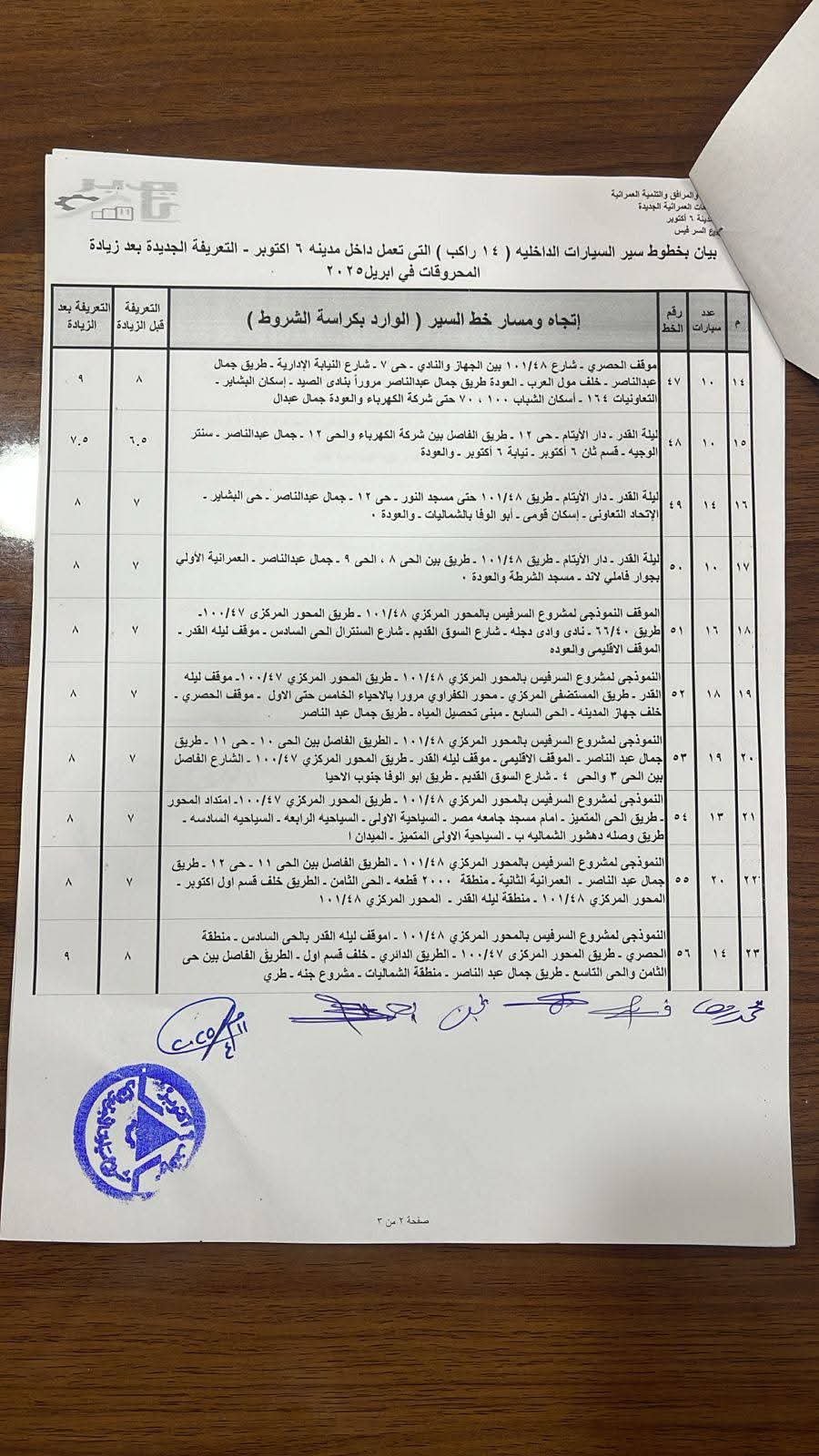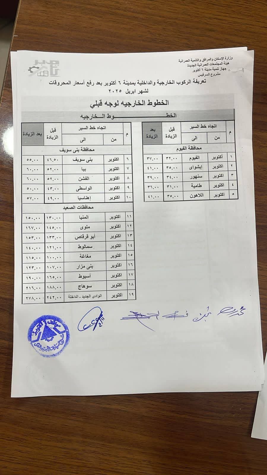 وأليكم الكشوف بأسعار تعريفة الركوب:
