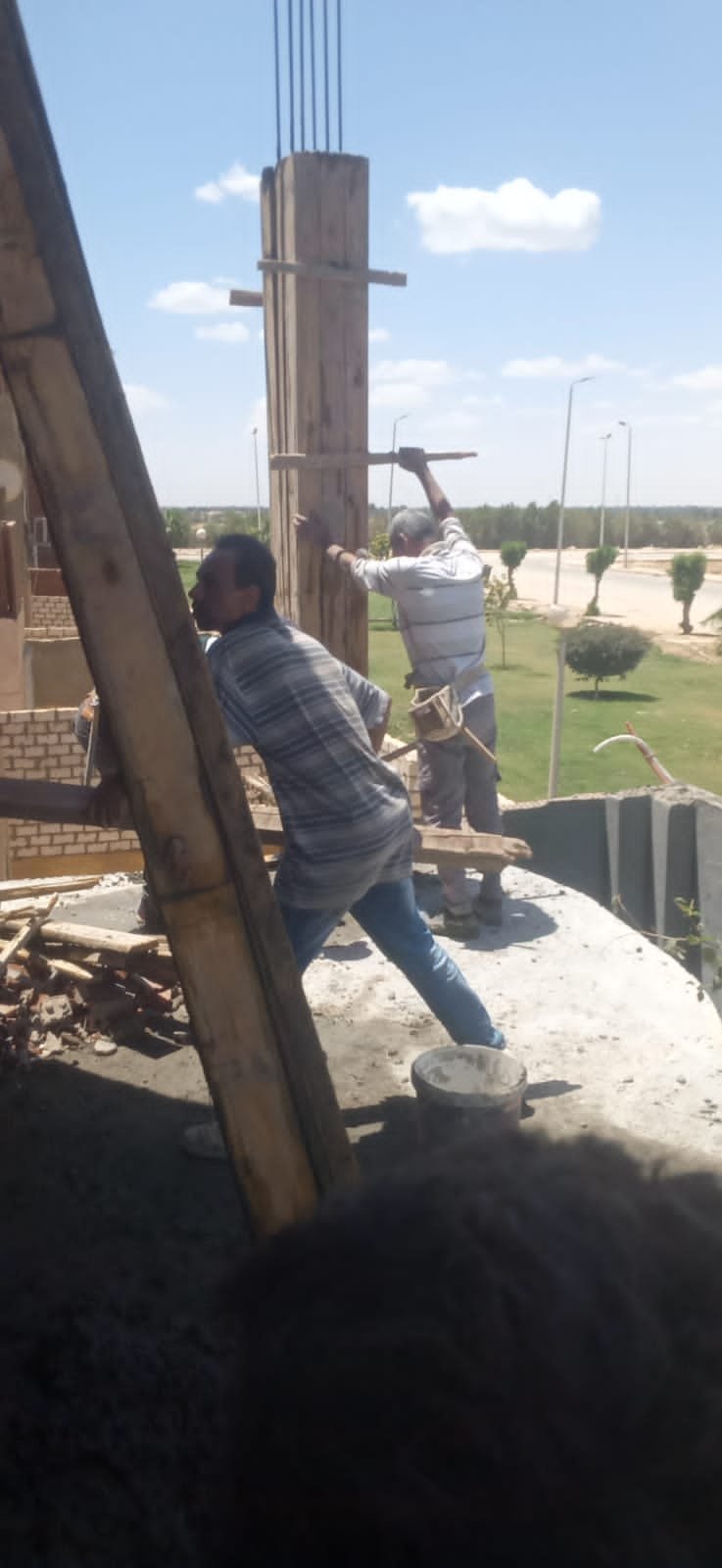 وقد تم التحفظ على الأخشاب والحديد المستخدم في عملية البناء المخالف.