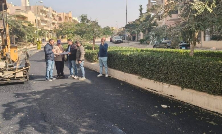 استكمال أعمال تنفيذ الطبقة الأسفلتية بالحي الخامس بمدينة العبور