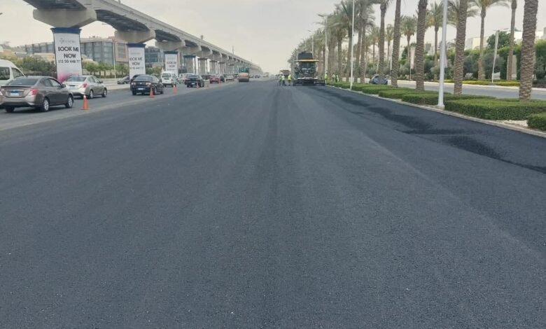 أعمال التطوير شملت تنفيذ الأسفلت بالحارات الرئيسية باستخدام تقنية إعادة التدوير FDR. بطول 6 كيلومترات وعرض 18 متر لكل اتجاه بمتوسط 5 حارات مرورية في كل اتجاه. وجار الانتهاء من 80% من أعمال البردورات بالطريق.