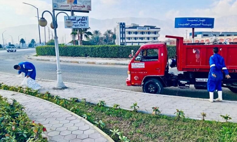 تكثيف أعمال النظافة بمناطق ومحاور مدينة السويس الجديدة