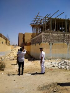 وقامت الحملة بتنفيذ إزالة فورية لعدد (٢) قطعة أرض بمنطقة ابنى بيتك (٢) بالمدينة وذلك لصب مبانى بالردود الأمامية والخلفية للقطع بالمخالفة للاشتراطات البنائية للمنطقة، كما تم إزالة فورية لقطعة أرض بالحي السكنى الثالث بالمدينة لصب مبان بسطح الدور الرابع علوى بدون ترخيص، وتم التحفظ على الأخشاب والحديد المستخدم فى عملية البناء المخالف.