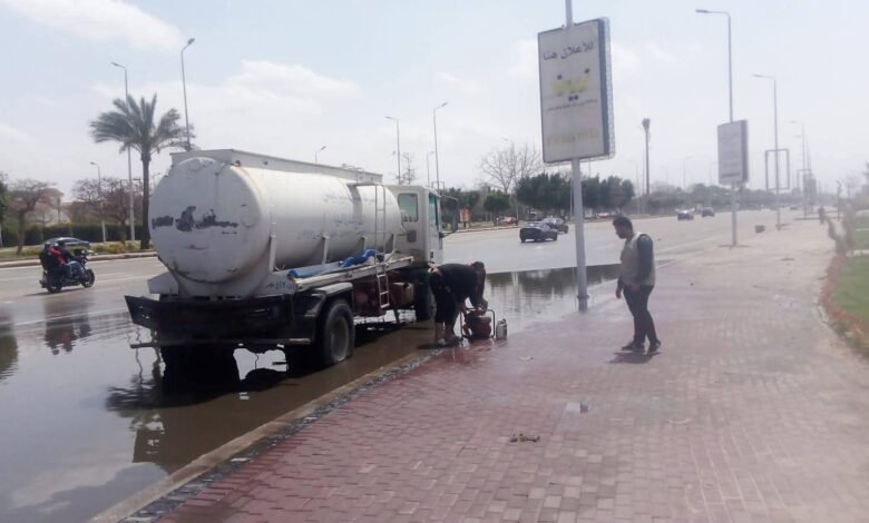 جهاز مدينة الشروق يواصل رفع تجمعات المياه لتسيير الحركة المرورية