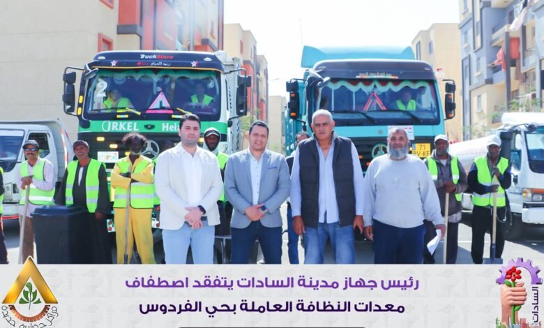 شهد المهندس محمد عادل أنور رئيس جهاز تنمية مدينة السادات، اصطفاف معدات وآليات النظافة العاملة بحي الفردوس يرافقه المهندس محمد حمدي زهران نائب رئيس الجهاز والمهندس ماهر الفقي مدير إدارة التنمية.