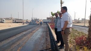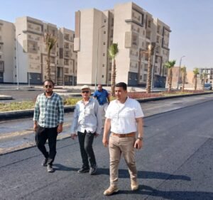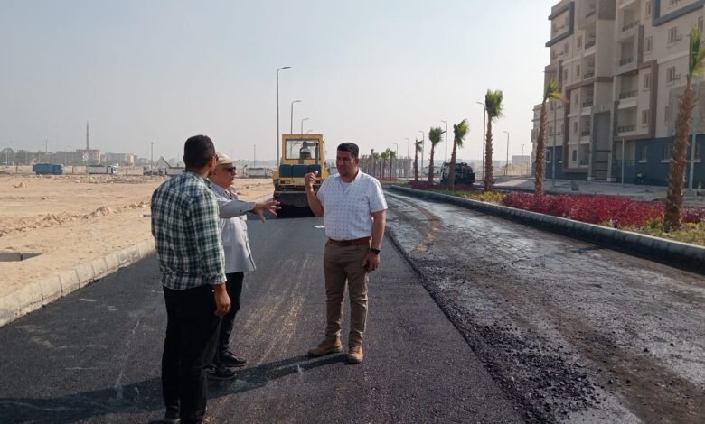 وتابع عبداللاه استكمال أعمال تنسيق الموقع العام الجارى تنفيذه للعمارات من طرق وشبكات الإنارة وزراعة وتشجير للطرق الرئيسية وأعمال تركيب الانترلوك للأرصفة بمداخل المنطقة، كما قام بتفقد ومتابعة أعمال الأسفلت الجارية بمداخل المنطقة وبالطرق المحيطة والباركينج الخاص بالموقع.