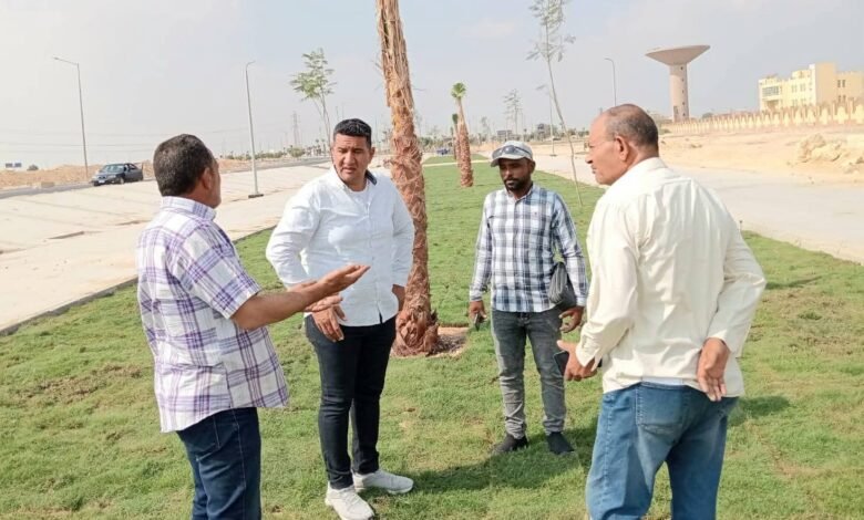 رئيس جهاز بني سويف الجديدة يتفقد أعمال زراعة وتشجير المسطحات الخضراء بمداخل المدينة