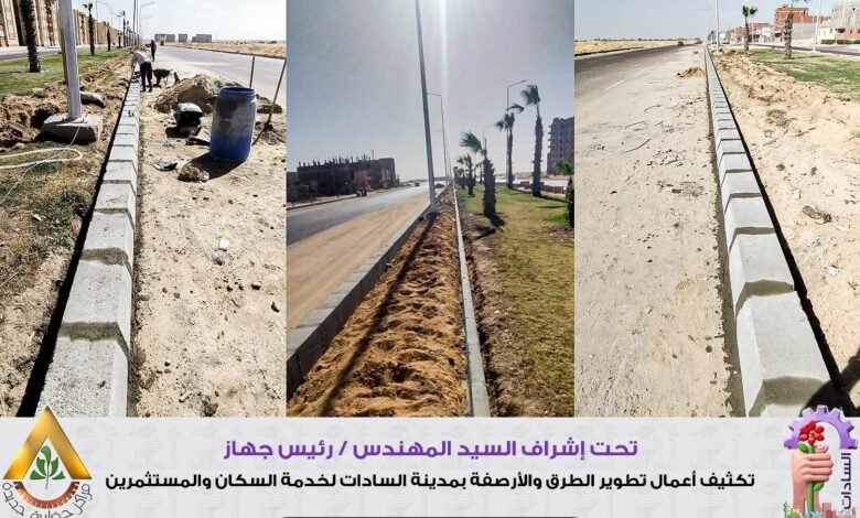 تحت إشراف المهندس محمد عادل أنور رئيس جهاز تنمية مدينة السادات وبمتابعة ميدانية من المهندس أسامة محمد سيد علي نائب رئيس الجهاز تواصل إدارة الطرق بالجهاز تنفيذ خطة تطوير ورفع كفاءة الطرق والميادين بمختلف أحياء المدينة ضمن جهود تحسين البنية التحتية ورفع مستوى الخدمات المقدمة للمواطنين والمستثمرين.