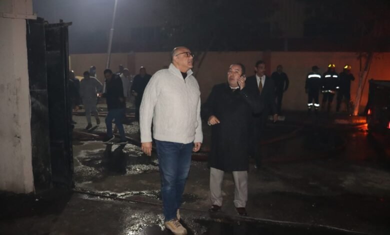 محافظ القليوبية ومدير الأمن يتابعان إخماد حريق بمخزن كراتين بالعبور الجديدة