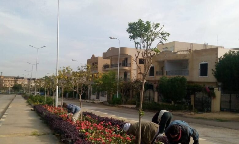 مواصلة أعمال الزراعة وصيانة المسطحات الخضراء بمدينة الشروق