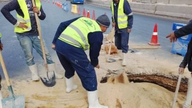 إصلاح هبوط أرضي بالطريق الأوسطي بنطاق حدائق أكتوبر